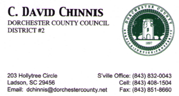 Dorchester County Council Member for District #2: C. David Chinnis [DChinnis@dorchestercountysc.gov]